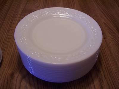 ANCHOR HOCKING White Milk Glass 9" Dinner Plates Lot 12