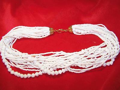 Vintage Milk Glass Bead Seedbd Necklace Estate Jewelry