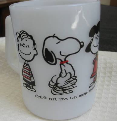 1960s MINT Milk Glass mug w Snoopy Linus Lucy CB, NR!