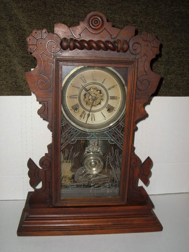 Title (ebay affiliate link): Antique 1891 Waterbury Walnut Parlor Shelf Clock Works