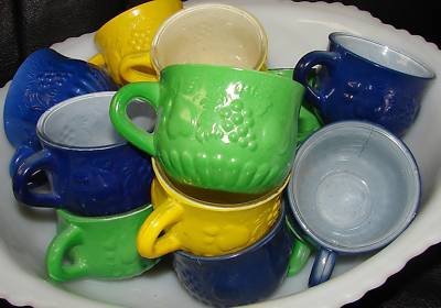 McKee Milk Glass Punch Bowl 16 COLORED cups The Concord