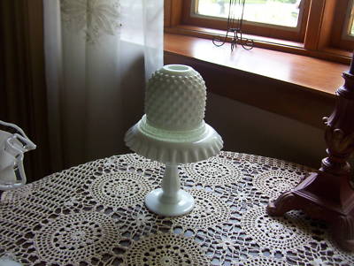 UNUSUAL WHITE MILK GLASS HOBNAIL FAIRY LAMP VGC