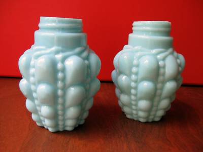 Blue Milk Glass Consolidated Shakers Guttate Opaque