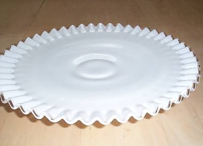 NICE VINTAGE MILK GLASS CAKE DISH PLATTER SIGNED FENTON