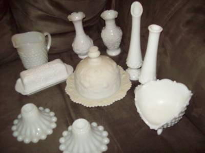 ESTATE: NINE PC COLLECTION VINTAGE MILK GLASS, ALL MINT