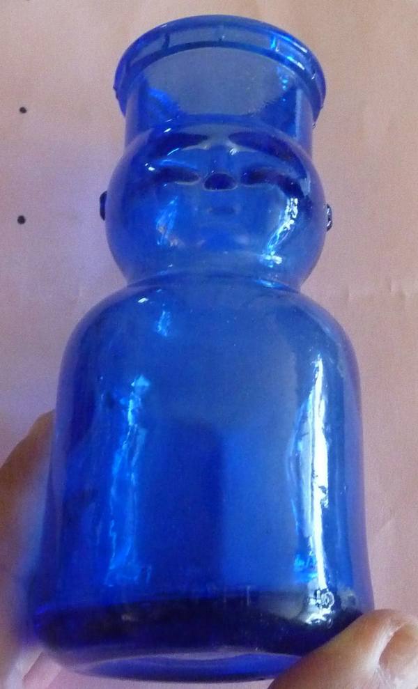 Cobalt Blue Glass Baby Face Half Pint Milk Bottle