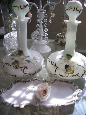 (1) SET OF ANTIQUE MILK GLASS BOTTLES W/TRINKET DISH