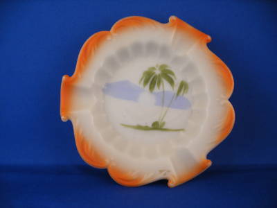 Westmoreland Milk Glass Ash Tray with Painted Palms