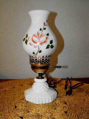 Milk Glass Table Lamp Pink Floral Turn-Key Vintage