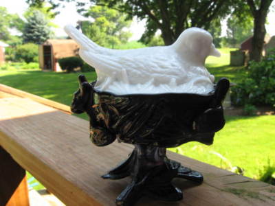 WESTMORELAND Milk Glass BIRD on PURPLE SLAG Nest