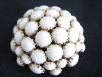 VTG LARGE PRONG SET MILK GLASS CABOCHON DOME BROOCH PIN