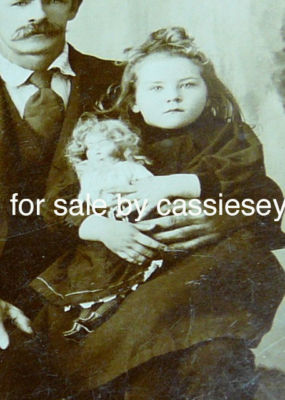 Antique Victorian Family Photo Girl Holds Bisque Doll