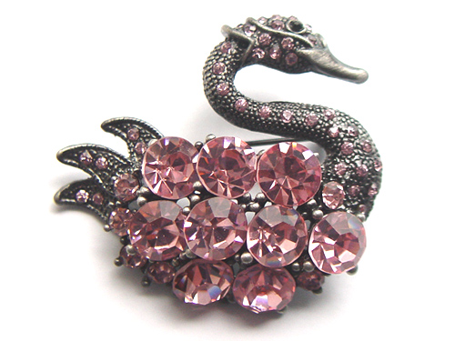 Title (ebay affiliate link): Antique Inspired Pink Czech Rhinestone Swan Pin Brooch