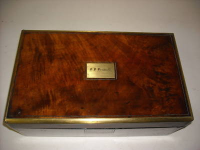 RARE 19THC.QUALITY BURL WALNUT&BRASS TRAVEL /LAP DESK!