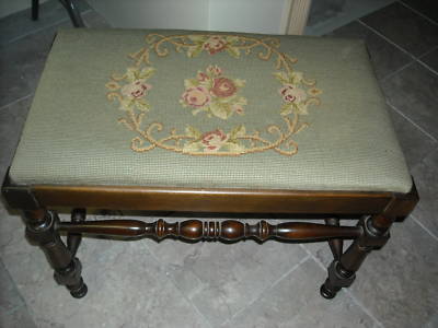 Title (ebay affiliate link): ANTIQUE CA.1940S ART DECO NEEDLEPOINT PIANO BENCH*NR*