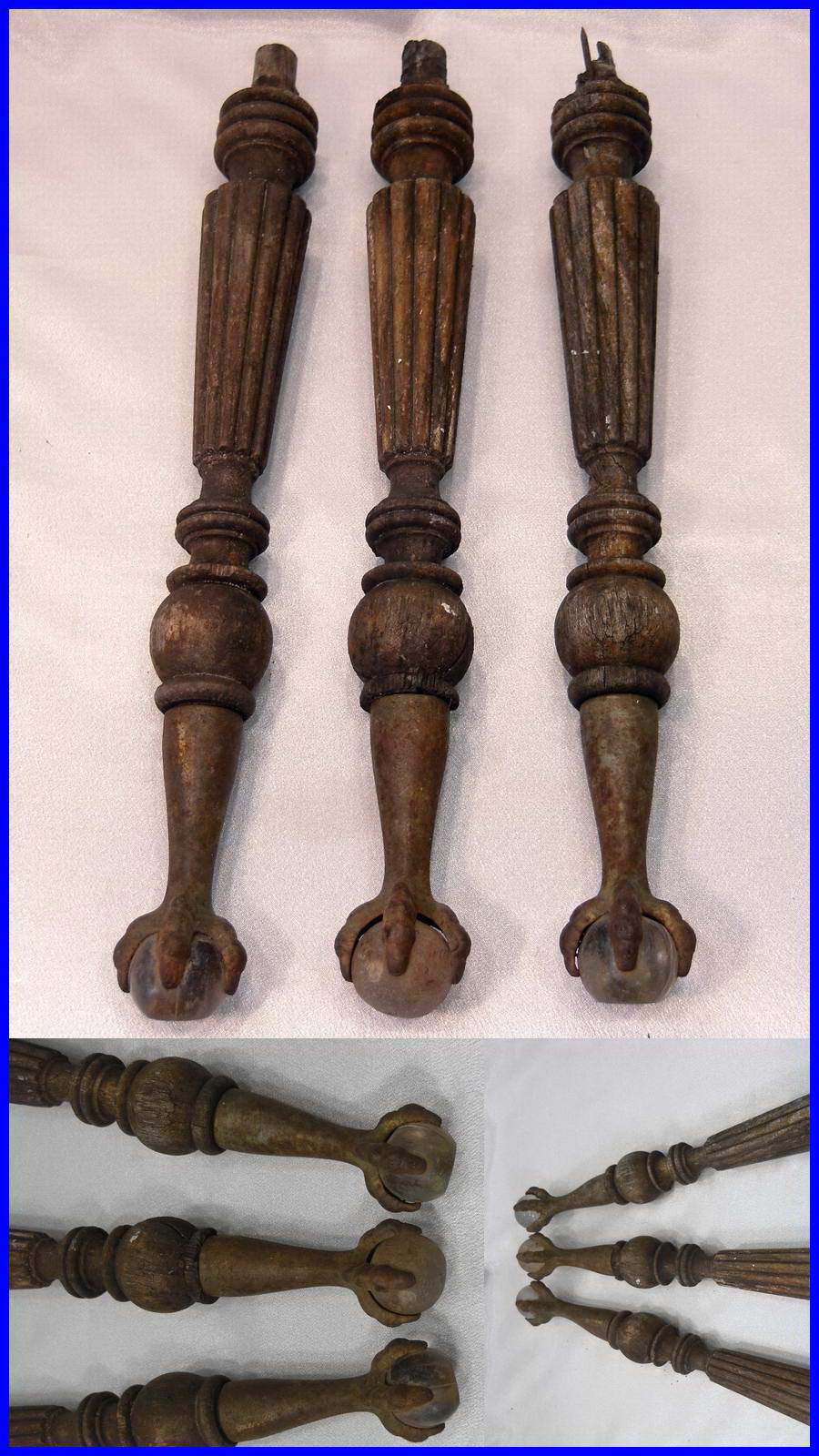 Title (ebay affiliate link): 3 x Antique Glass Ball and Claw Feet Furniture Legs