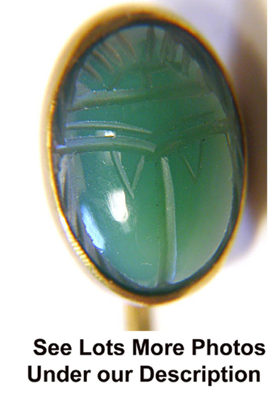 ANTIQUE GREEN CHRYSOPRASE SCARAB STICKPIN STICK PIN