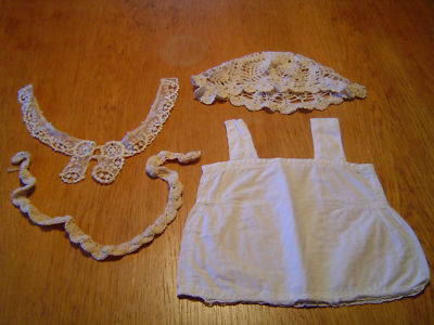 Title (ebay affiliate link): ANTIQUE DOLL CLOTHES CAMISOLE,CROCHET HAT,VINTAGE TRIMS