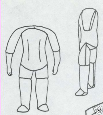 12"ANTIQUE HEUBACH DOLL CLOTH BODY w/FEET PATTERN