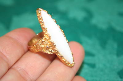 ANTIQUE WHITE STONE GOLD TONE BIG RING