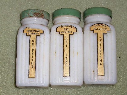 3 Griffith's Milk Glass Spice Jars