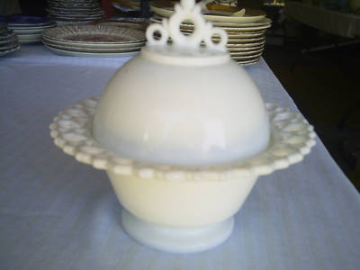 Opaque Milk Glass Covered Dish and Dancing Sailors Edge