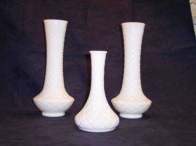 LOT OF 3 VINTAGE MILK GLASS VASES DIAMOND DESIGN