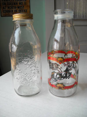 VINTAGE GLASS MILK BOTTLE CHRISTMAS REINDEER