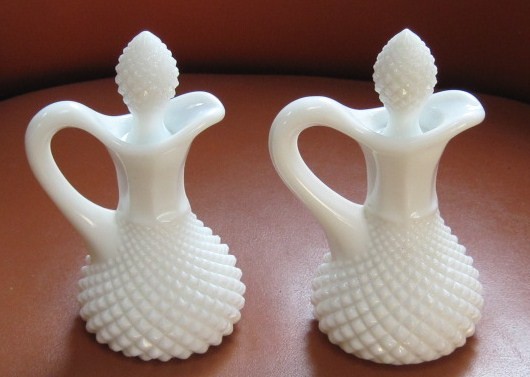 Title (ebay affiliate link): Pair Westmoreland English Hobnail Milk Glass Cruets