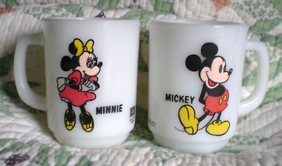 Anchor Hocking Milk Glass Mickey & Minnie Coffee Cups