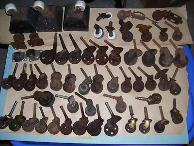 ANTIQUE FURNITURE CASTERS-DRESSER WHEELS-58 PIECES