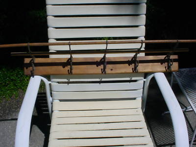 ANTIQUE COAT RACK 5 IRON HOOKS WALL MOUNT