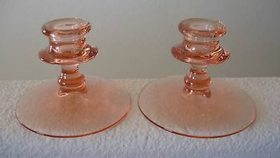 Title (ebay affiliate link): Pink Glass Candle Holders, Depression Era?, Pretty!