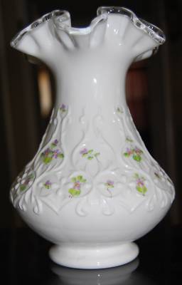 VINTAGE Fenton White 8" Milk Glass Spanish Lace Signed