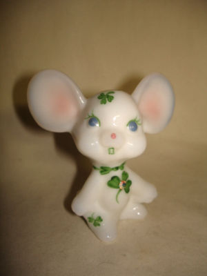Fenton Mouse - Irish Shamrocks Milk Glass - QVC 2004