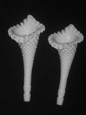 FENTON HOBNAIL MILK GLASS EPERGNE HORNS