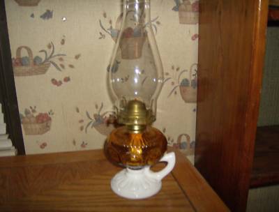 Antique,Vintage Amber & Milk Glass Oil Lamp,Zipper Loop