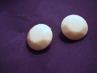 Thick Faceted Milk Glass Clip Back Button Earrings