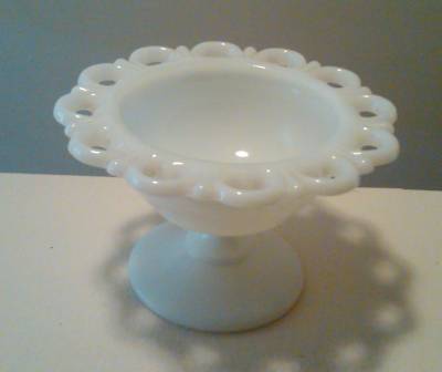 Set 6 Lace Edged Pedestal Milk Glass Dessert Bowls