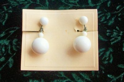 Antique White Milk Glass drop Earrings 1950 s Orig Card