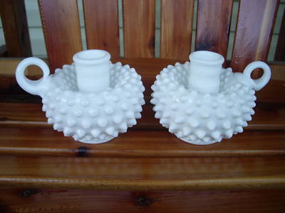 Title (ebay affiliate link): FENTON HOBNAIL MILK GLASS CANDLEHOLDERS SET 2 PRELOGO