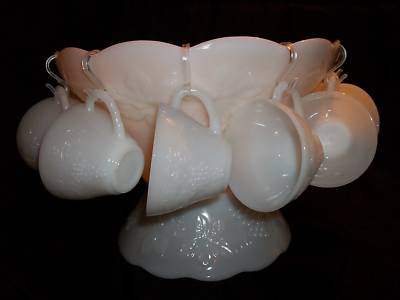 Vintage Anchor Hocking Milk Glass Punch bowl set 12 pcs