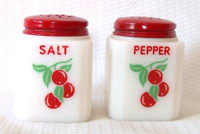 Vintage Milk Glass Cherry Salt & Pepper Range Set