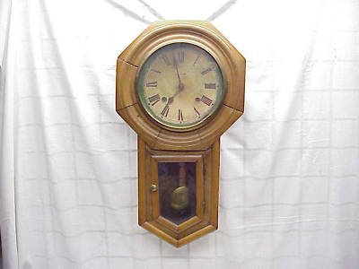 Antique Ansonia Wood Case Key Wind Schoolhouse Clock
