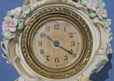 Ornate Antique Floral Design Vanity Clock Ansonia