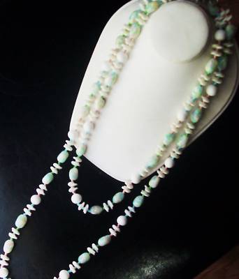 62" Long Pastel Milk Glass Bead Vintage Necklace