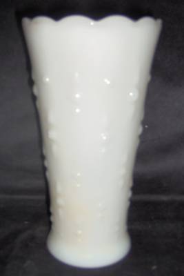 Milk Glass Tear Drop Vase 7" high Scalloped to edge