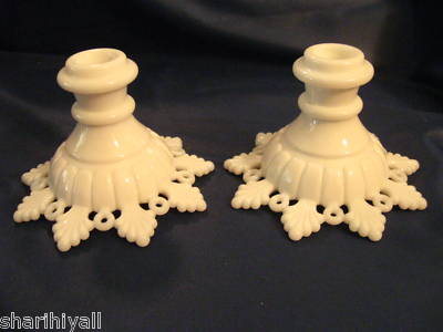 Pair Westmoreland Milk Glass Candlesticks Ring & Petal