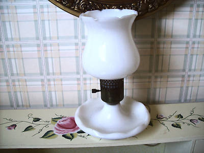 VINTAGE MILK GLASS ELECTRIC NIGHT STAND LAMP