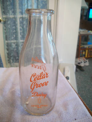 VINTAGE CEDAR GROVE WISCONSIN DAIRY QUART MILK BOTTLE